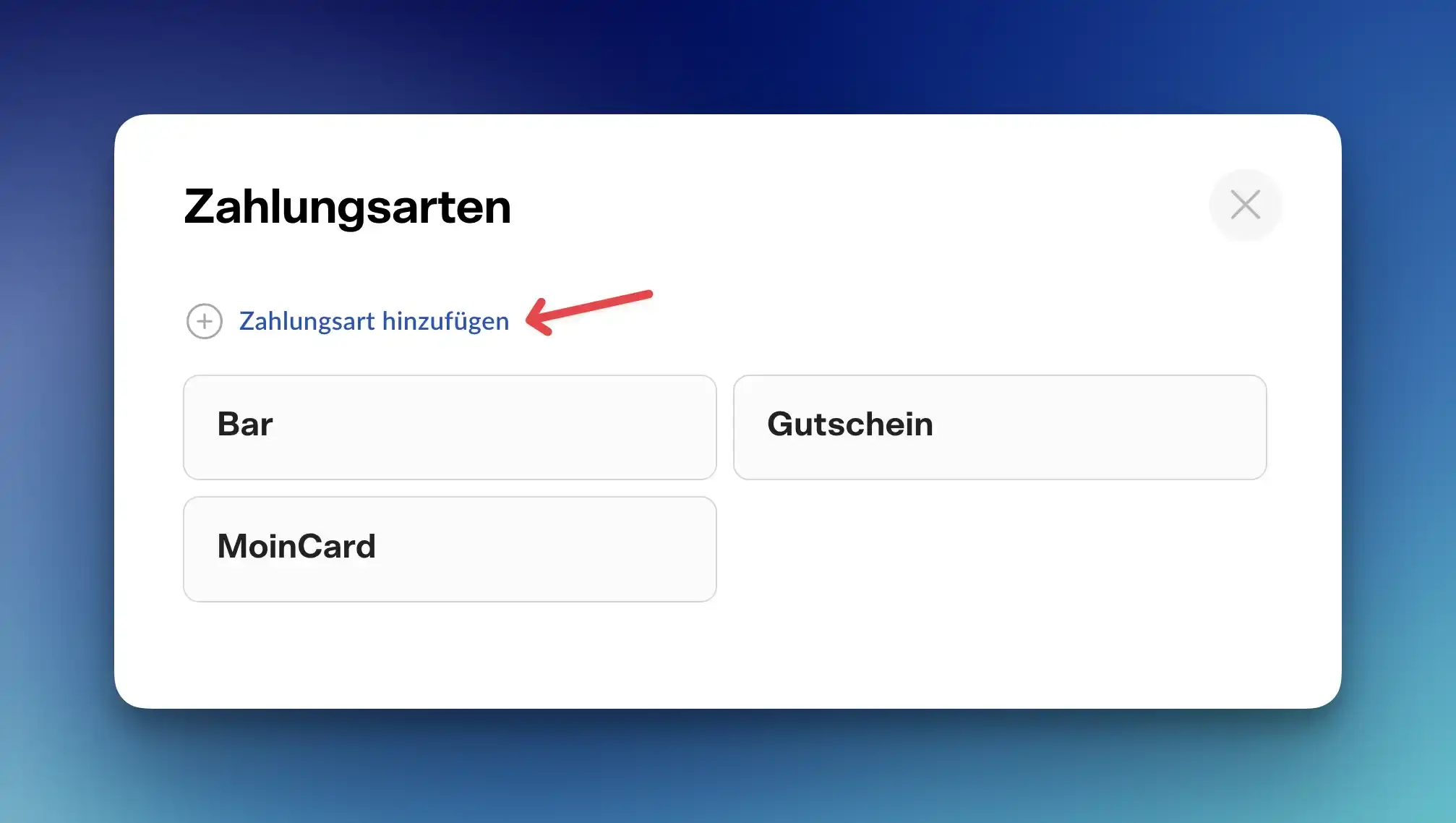 Zahlungsarten hinzufügen