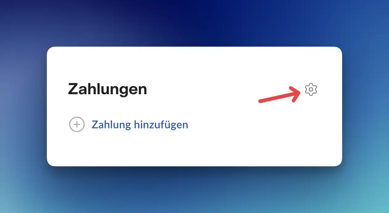 Im Abschnitt Zahlungen klicken Sie das Zahnrad-Symbol, um die Zahlungsarten-Einstellungen zu öffnen: